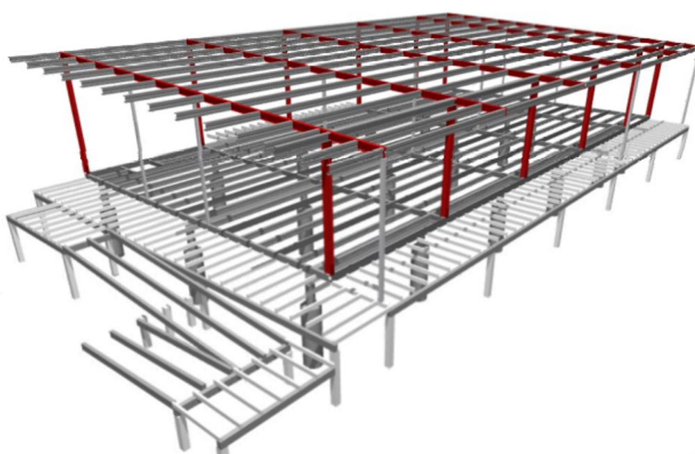 - Interior steel framing and exterior cladding (image 15)